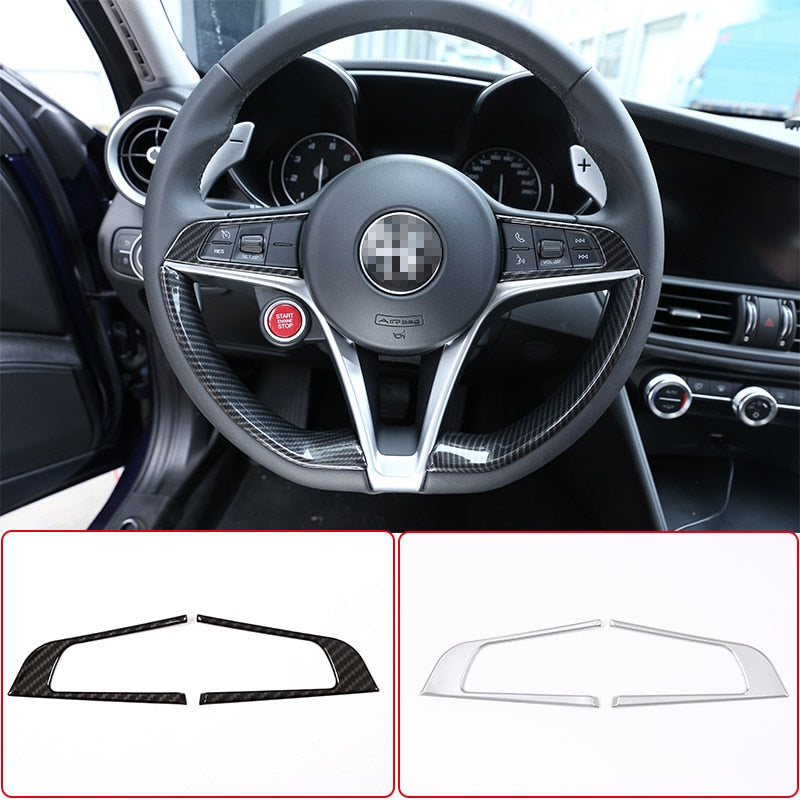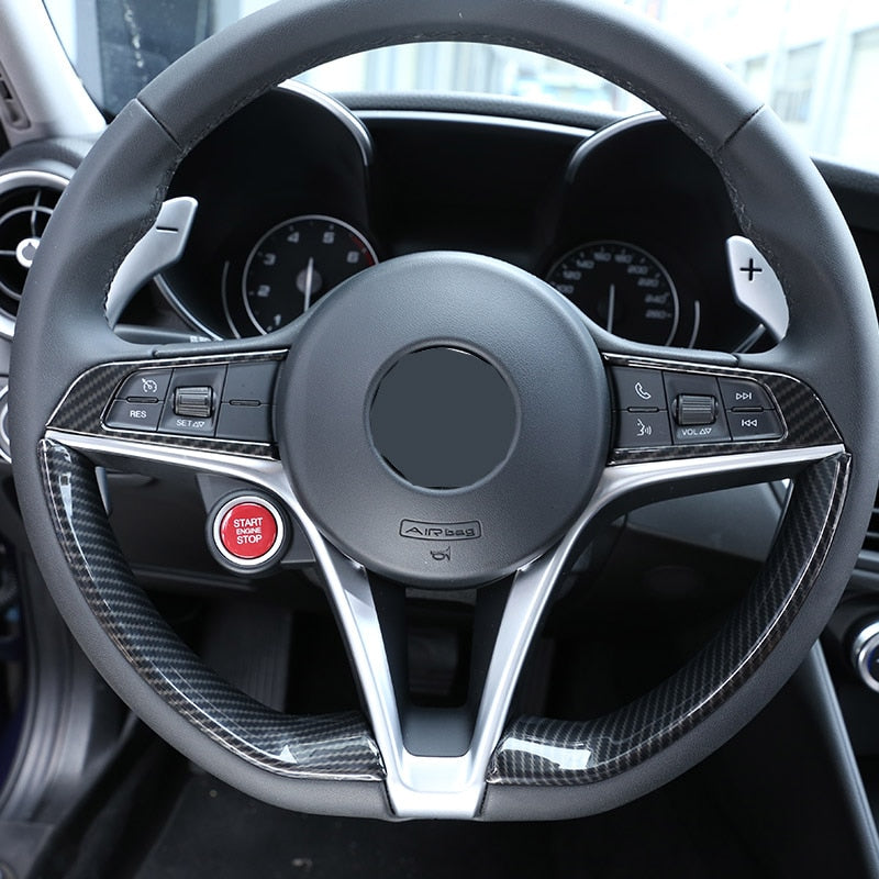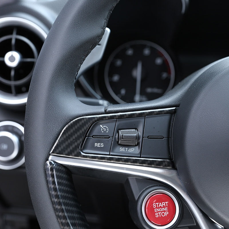 Dekorative Abdeckung für Lenkradtastenknöpfe in Giulia und Stelvio. Hergestellt aus robustem Material für langanhaltenden Schutz.