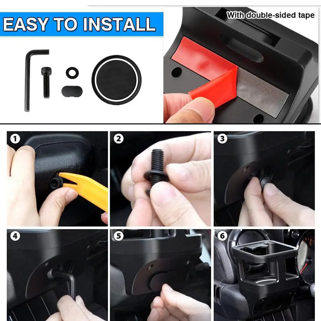 Spezieller Getränkehalter für Suzuki Jimny (2019–2023), einfach am Lüftungsgitter zu befestigen. Perfekt für Flaschen, Dosen oder Kaffeebecher, platzsparend und stabil.**Innenraumzubehör für Suzuki Jimny:** Dieser Getränkehalter wurde speziell für den Suzuki Jimny entwickelt und bietet einen praktischen Platz, um Ihre Getränke während der Fahrt sicher aufzubewahren. **Getränkehalter mit Halterung für Autos:** Unser Getränkehalter ist mit einer Halterung ausgestattet, die einfach in Ihrem Auto installiert werden kann und die Stabilität Ihrer Getränke auch auf unebenen Straßen gewährleistet. **Getränkehalter für Wasserflaschen im Suzuki Jimny:** Dieser Getränkehalter ist ein unverzichtbares Zubehör für Jimny-Besitzer. Er ist leicht zu bedienen und beeinträchtigt nicht die Bedienung Ihrer Blinker, was eine sichere und komfortable Fahrt garantiert. **Auto-Halterung für Telefon und Getränke:** Die Auto-Halterung für Telefon und Getränke ist nicht nur dafür ausgelegt, Ihre Getränke sicher zu halten, sondern bietet auch einen praktischen Platz für Ihr Telefon während der Fahrt. So haben Sie sowohl Ihre Getränke als auch Ihr Telefon stets griffbereit. **Stand-Organizer für Innenraumzubehör:** Dieser Stand-Organizer besteht aus ABS und Metall, was ihn langlebig und abwaschbar macht. Er ist rost- und beschädigungsresistent, was eine lange Lebensdauer garantiert. Dank der praktischen Befestigungsmethode ist kein Bohren erforderlich. **Spezifikation:** Farbe: Schwarz Material: ABS Größe: Ca. 16 * 10,6 * 10 cm / 6,30 * 4,17 * 3,94 Zoll **Hinweis:** Es kann zu leichten Farbverzerrungen aufgrund unterschiedlicher Computerauflösungen kommen. Es können leichte Messfehler aufgrund unterschiedlicher Handmessungen auftreten. **Lieferumfang:** 1x Aufbewahrungsregal 1x Schraubenschlüssel 1x Schraube 1x Unterlegscheibe