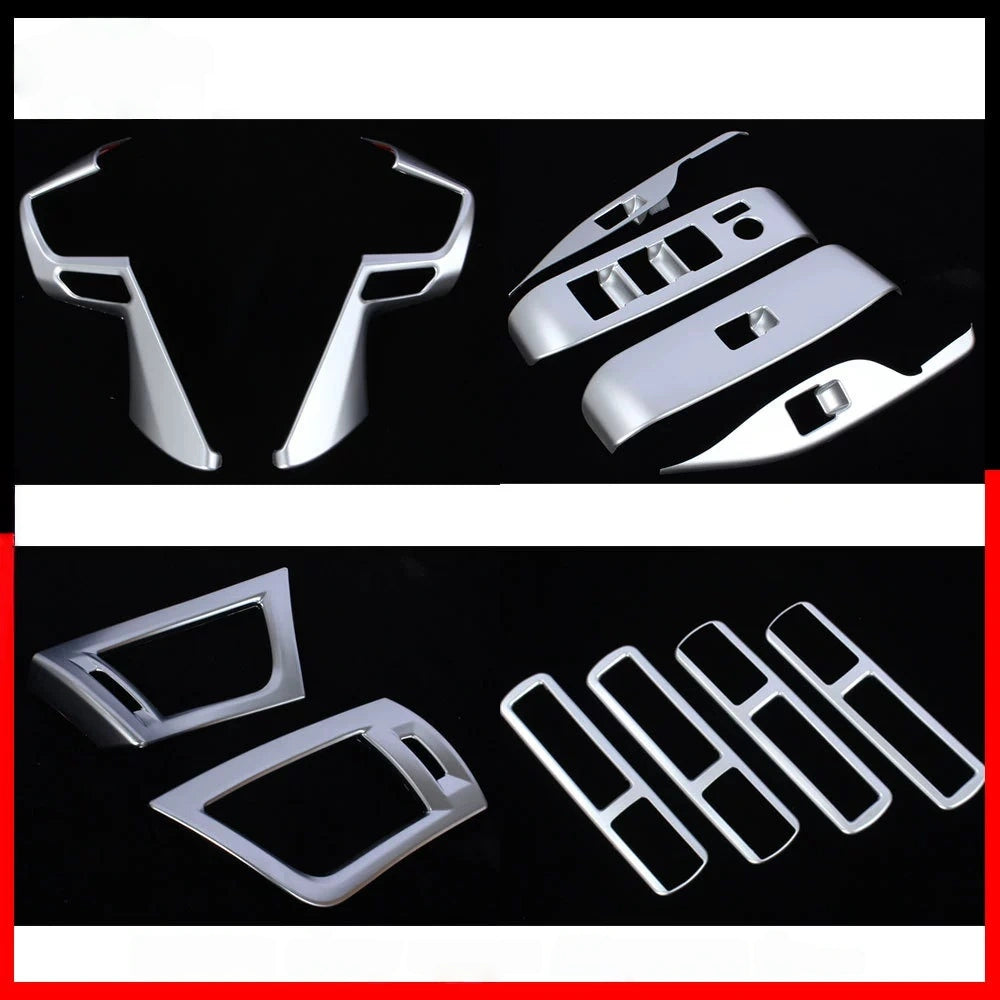 Passgenaue Verkleidung für Fensterheberschalter und Luftauslässe im Innenraum – passend für Toyota Alphard/Vellfire Baujahr 2016–2021. Gefertigt aus hochwertigem ABS-Kunststoff, Oberfläche in edlem Matt-Silber-Finish. Einfache Montage mit 3M-Klebeband auf der Rückseite. Wichtig:Bei Temperaturen unter 15 °C bitte vor dem Aufkleben erhitzen!