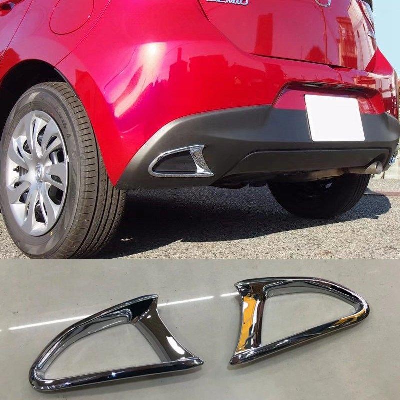Verchromte Abdeckungen für die hinteren Nebelleuchten im Mazda 2 DJ. UV-beständig, stabil und einfach anzubringen.