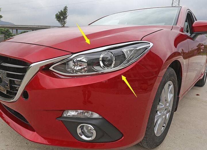 Verchromte Rahmen für Frontscheinwerfer des Mazda 3 BM – elegante Optik trifft Schutz. Langlebig, UV-stabil, passgenau. Einfach montiert, ideal zur optischen Aufwertung der Leuchten.