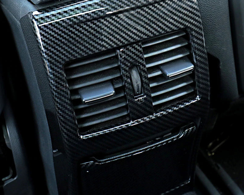 Carbon-Detailset für Mittelkonsole, Armlehne und Lüftungsöffnungen. Hochpräzise gefertigt, hitzebeständig, leicht zu reinigen und verleiht dem Innenraum ein sportlich-exklusives Ambiente.
