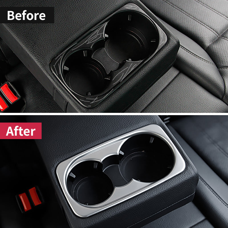 Edle Carbon-Edelstahl-Abdeckung für die Rücksitz-Getränkehalter schützt Oberflächen und sorgt für ein einheitlich hochwertiges Erscheinungsbild im Fond. Langlebig und optisch überzeugend.