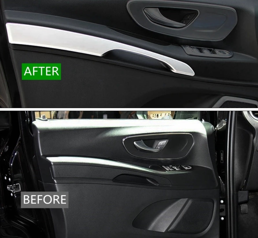 Edelstahl-Chromleiste für Innengriffmulde dekoriere Türinnenseiten und schützt vor Verschleiß. Passform optimiert für Vito-Modelle – Pflegeleicht und montierfreundlich.